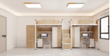 公寓書桌床: 1、公寓床架: (1)雙人位公寓床,尺寸長(zhǎng)4500mm,寬900mm,高2100mm。 (2)床立柱:采用正六邊形無縫鋼管,直徑65mm(±...點(diǎn)擊詳情